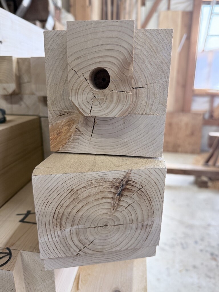 追っ掛け大栓と釜継ぎの加工。係りや長さをしっかり確保できることで、構造的な安心感が大きく変わります |