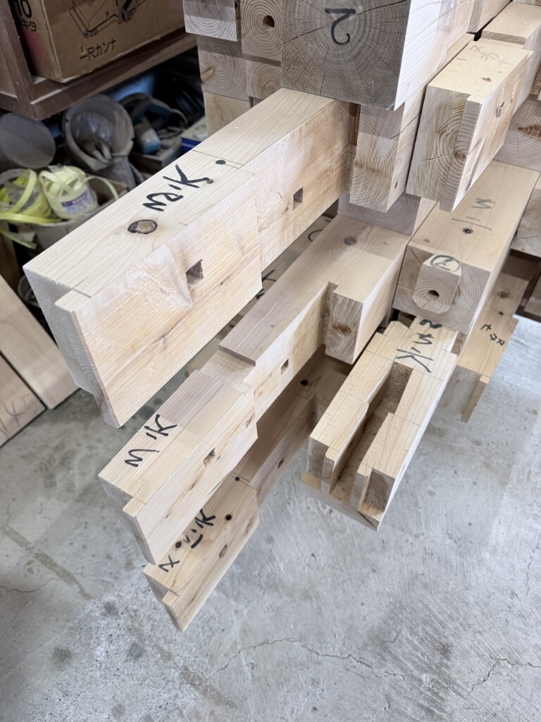 他の仕口や継ぎ手も同様に、一本一本、木の状態を見ながら刻んでいます。